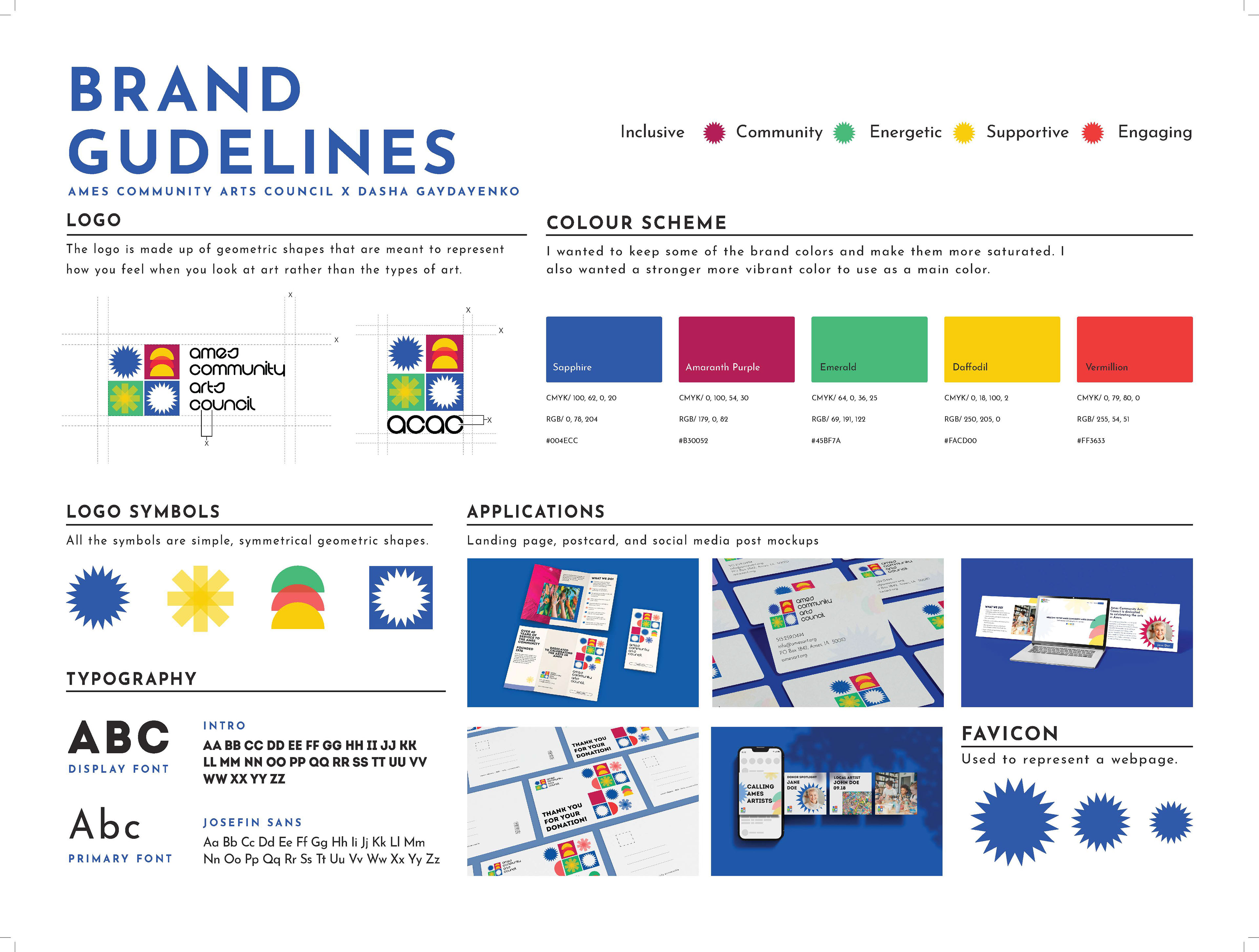 In this studio project we were required to redesign the branding for a non-profit/non-public company. I chose the Ames Community Arts Council. We were required to create and mockup deliverables relevant to the company's new branding.